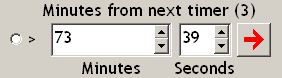 In 'Next' mode (right red arrow) the distance in time between the active timer and the next timer will be the values as set in the spin edit, minutes and seconds.