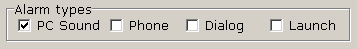 Select which alarm types you want to run when an alarm executes. At least one type must be selected. This is the setting for individual alarms. To define the default for new timers use Options>Alarm defaults.